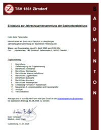 hiermit laden wir Euch recht herzlich zu diesjährigen Jahreshauptversammlung der Badminton-Abteilung ein.