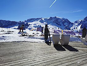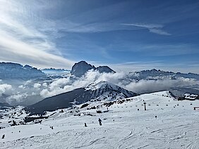 Der nächste Tag versprach wiederum beste Bedingungen, wir waren früh auf der Piste um die morgendlich guten Schneeverhältnisse zu nutzen. Ab Mittag wurde der Schnee dann weicher und es war Zeit für eine Rast in der Hütte.